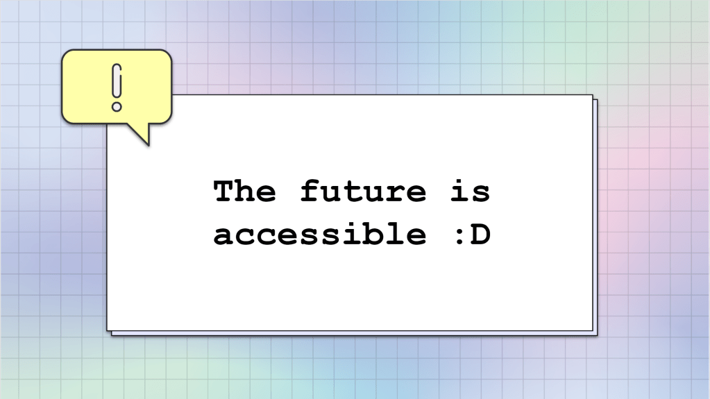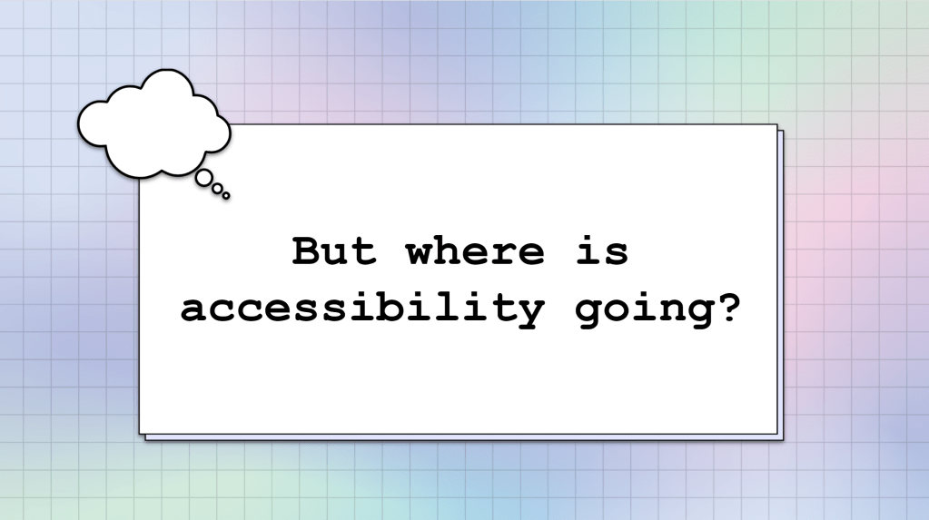 But where is accessibility going…? We’ve seen a little bit today on what people were doing in the past, and what folks are doing now… but what now. What can we do to keep pushing the boundaries?