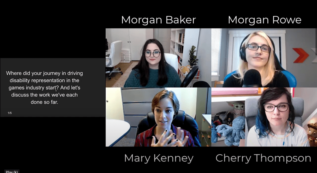 “Moving Disability Representation Beyond ‘It Matters'” with Morgan Rowe (Hi-Rez Studios), Cherry Thompson (Ubisoft), and Mary Kenney (Insomniac Games)