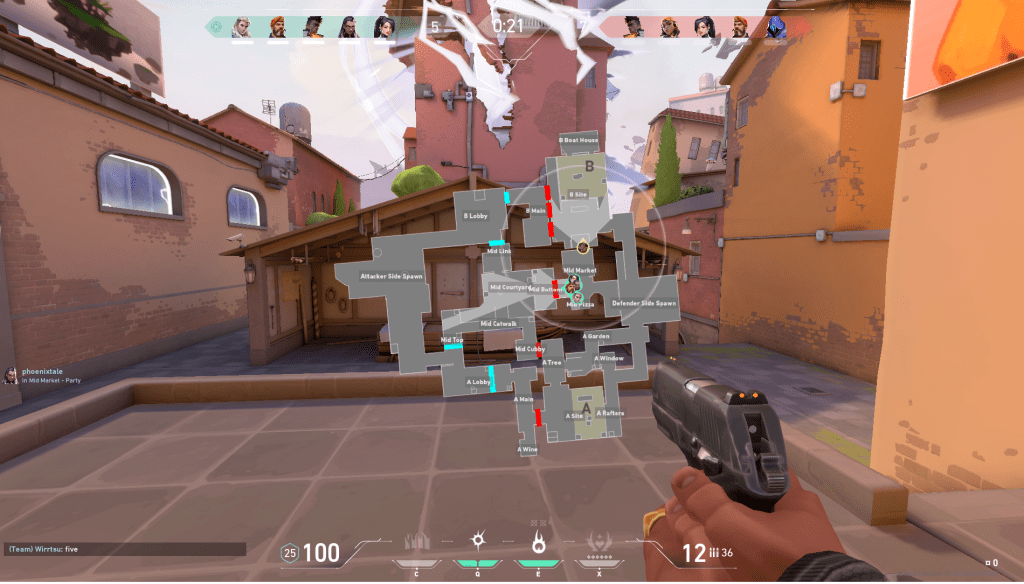 A more specific example is the spike timer. Right now, the spike timer’s cue is a visual blinking and a corresponding beeping noise, both of which become more rapid the closer to detonation. For hearing users, they listen to the beeping noise while simultaneously playing the game. However, deaf users spend their time actively watching the timer which, to deaf users, means they are wasting precious time during the most critical point of the game. One user reflects that while playing Valorant, “I had to keep a keen eye on the blinking icon when the spike was planted… more than my environment sometimes – especially when defending the bomb-site.” Deaf users found that though there is a visual cue, it not only lacked impact, but also hindered their gameplay.